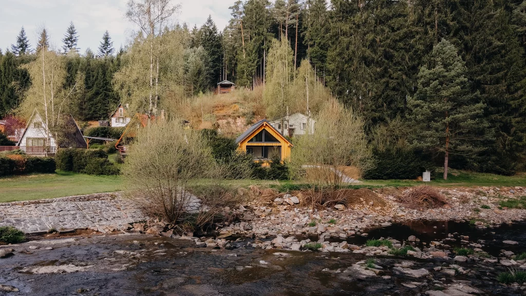 Na místě původní chaty na levém břehu řeky Malše kousek za Kaplicí jsme měli možnost se projevit, tak jak to máme nejvíce rádi – od návrhu až po samotnou realizaci na klíč. Poradit si s odstraněním původní chaty, na jejím místě navrhnout moderní chatu a lá Chalet, tak aby nevyčnívala v chatařské osadě, jejíž je součástí. Věříme, že se nám to povedlo. Difuzně otevřená dřevostavba s modřínovým obkladem, hliníkové plechy, moderní prosklené výplně. To stačí.